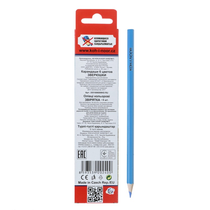 Набор из 6 цветных заточенных карандашей серии "Животные" от чешской компании "Koh-I-Noor".