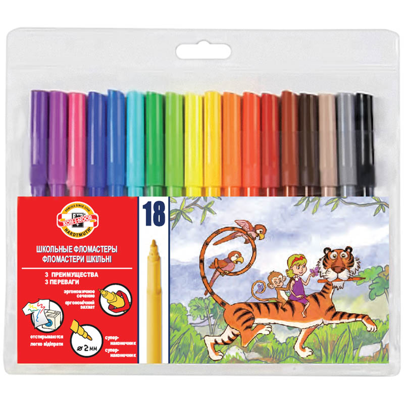 Набор фломастеров для детского творчества. Фломастеры с эргономичной трехгранной зоной обхвата. Чернила легко отстирываются с одежды, смываются водой. Пишущий узел - 2 мм. Упаковка - ПВХ.