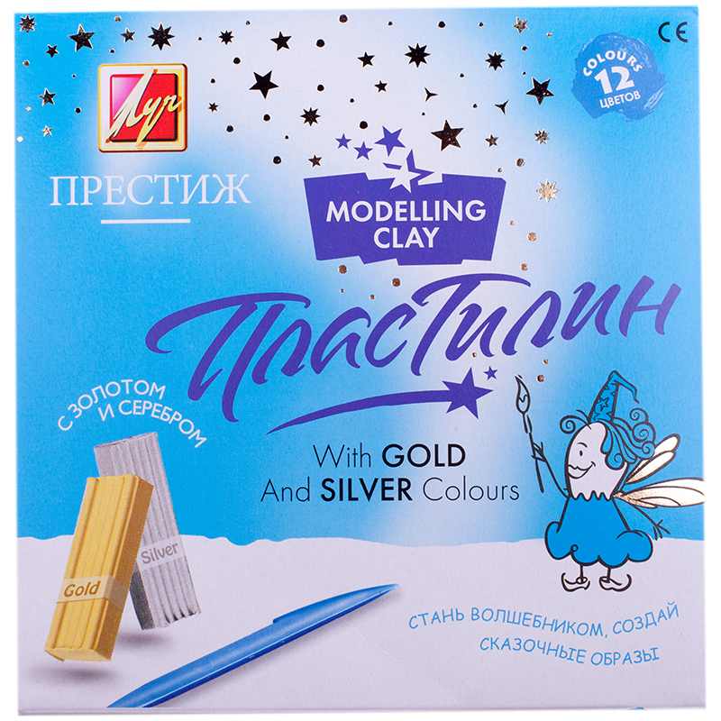 Предназначен для детского творчества. Изготовлен на основе природных восков. Высоко пластичен, легко размягчается. Не прилипает к рукам и идеально держит форму. Яркие насыщенные цвета. Дополнительно 1-2 брусочка пластилина с эффектом «металлик» золото и серебро.