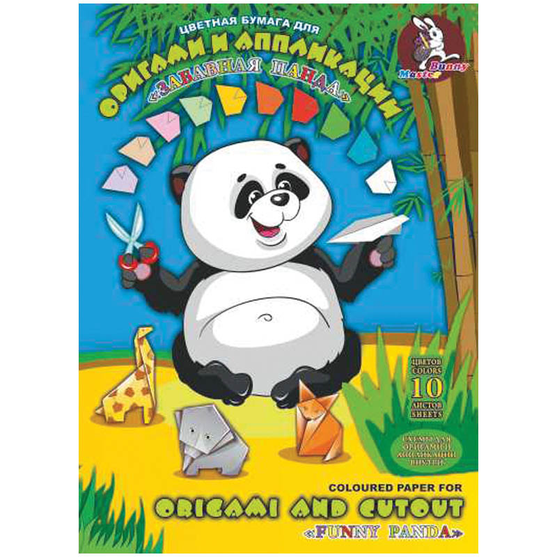 Цветная бумага для оригами и аппликации "Забавная панда", A4, 10л., 10цв., в папке
