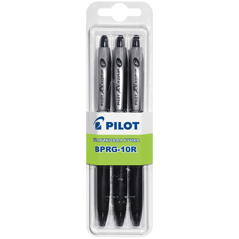 Набор автоматических шариковых ручек "Rexgrip", 3шт., черные, 0,7мм, грип, блистер