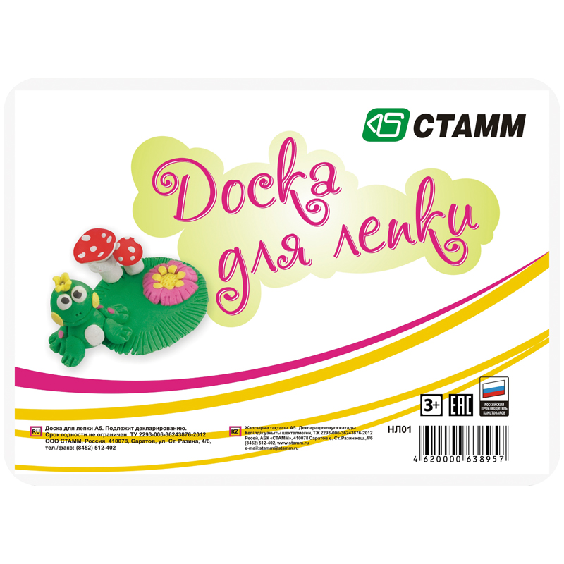 Доска формата А5 предназначена для лепки из пластилина. Изготовлена из жесткого прочного пластика, устойчивого к царапинам. Имеет закругленные углы для безопасности. Гладкая поверхность. Упакована в термоусадочную пленку с ярким вкладышем.