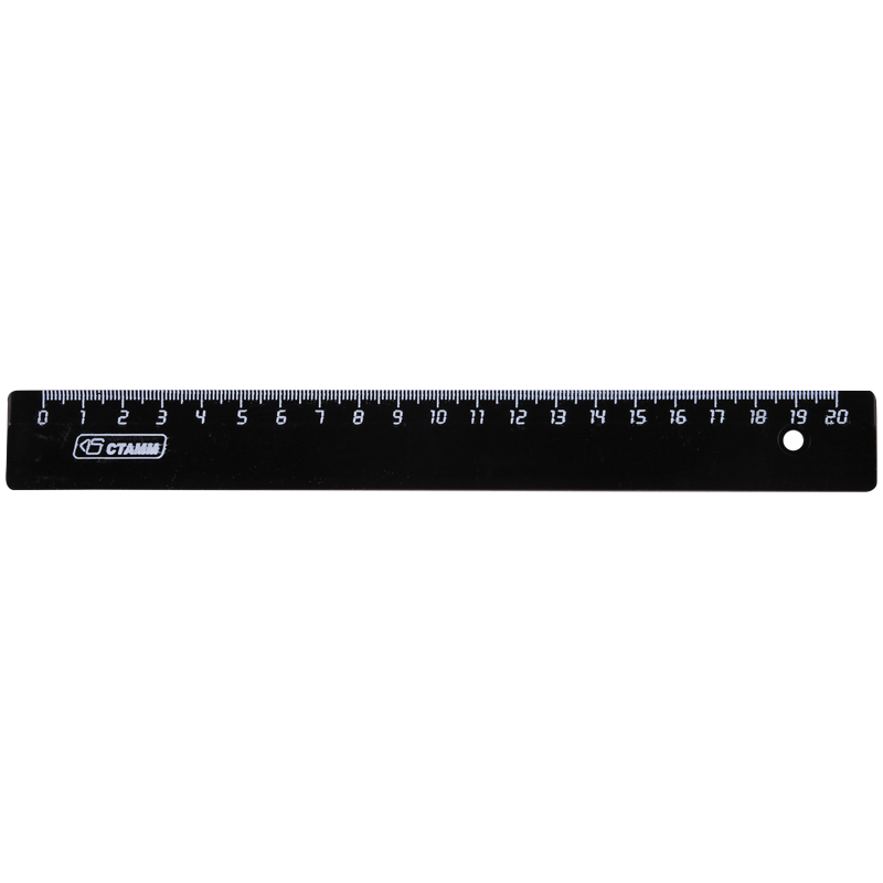 Линейка 20см, черная. Имеет безопасные закругленные углы и четкую печатную шкалу. Индивидуальный штрих-код на единице изделия.