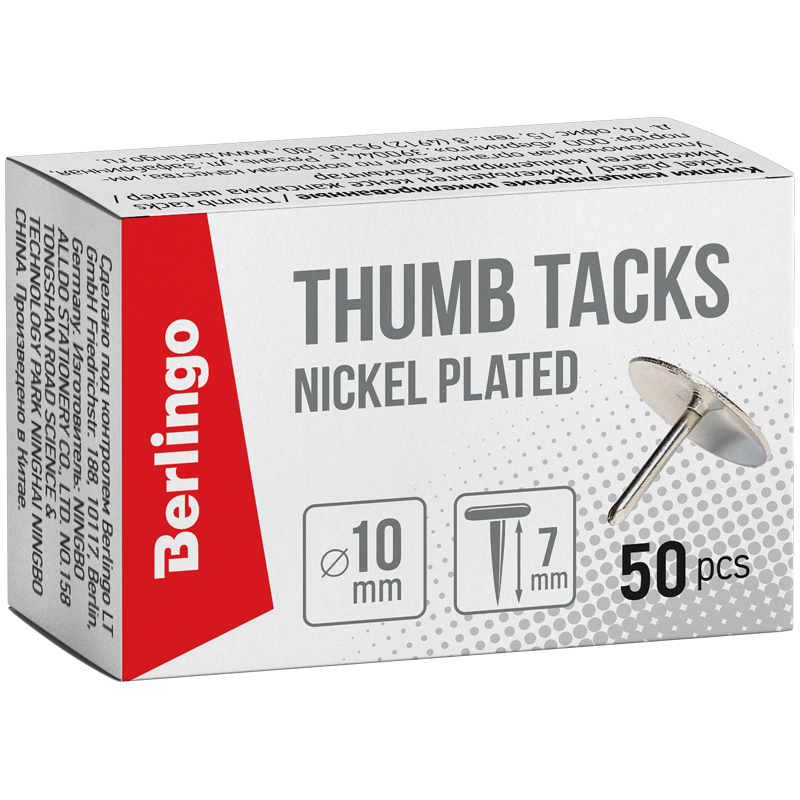 Кнопки-гвоздики никелированные для надежного крепления бумаги. Упаковка в картонную коробочку - 50 шт.