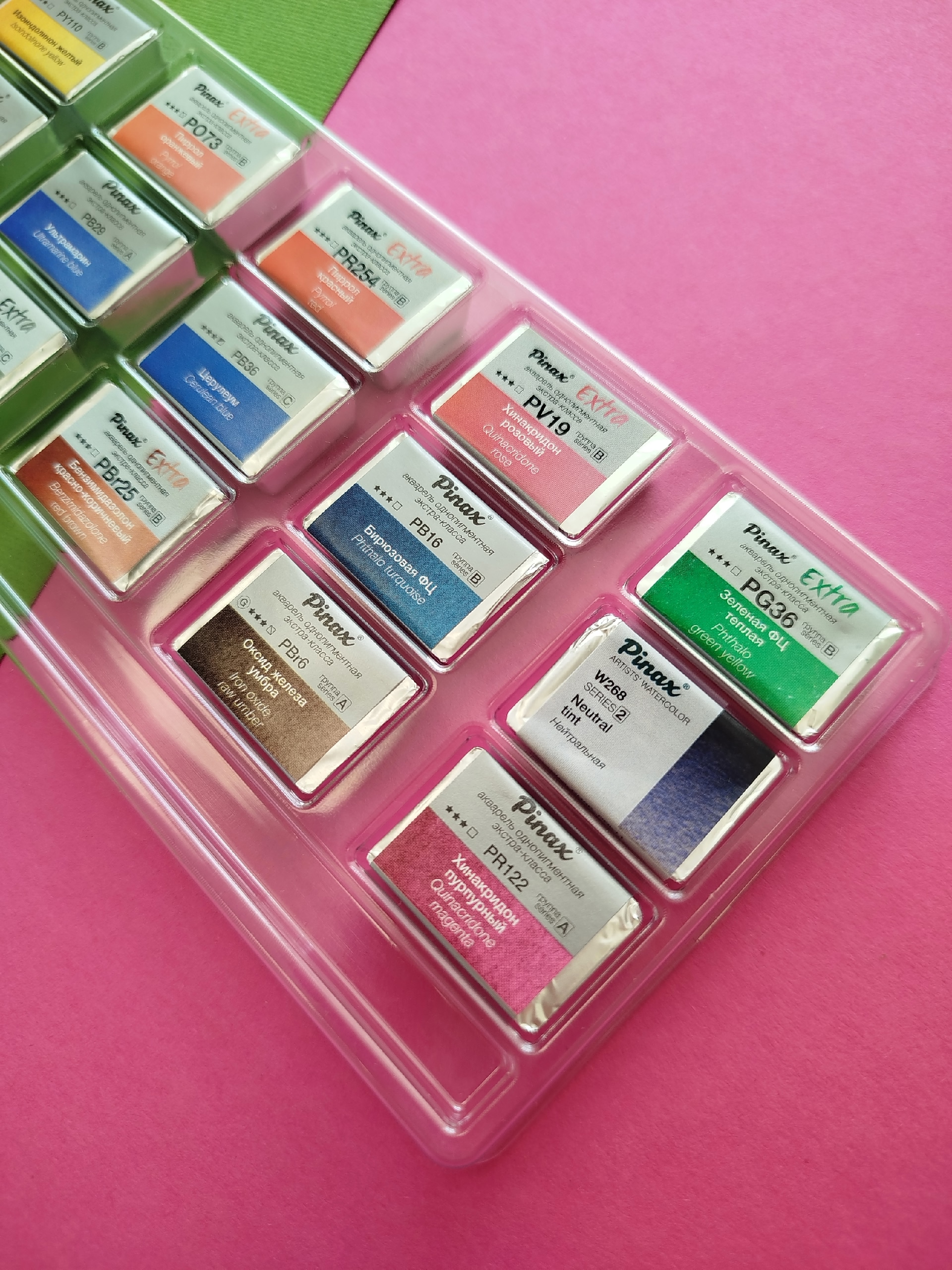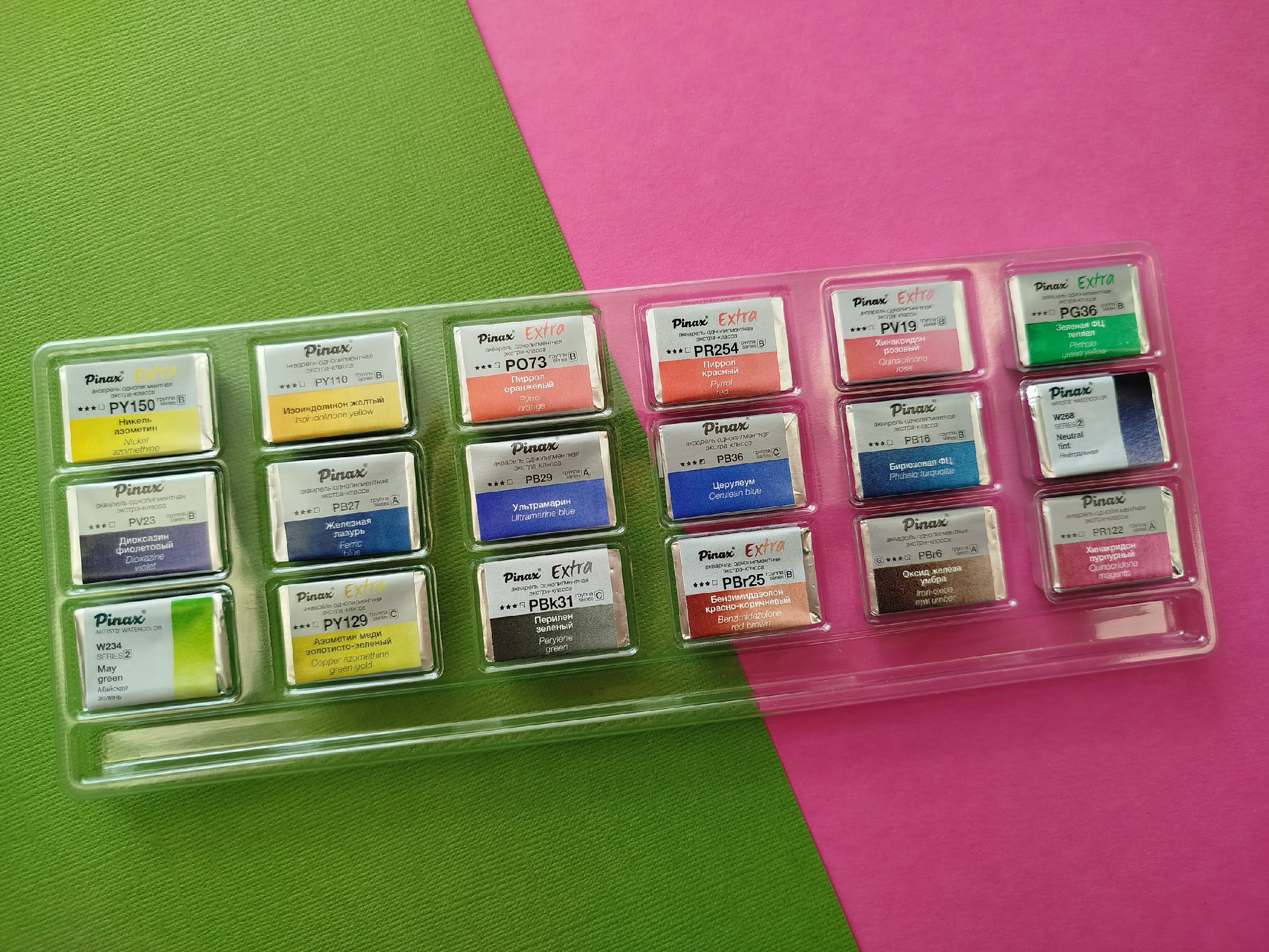 Набор акварели Pinax "Ботаничская палитра" 18 кювет - новая палитра акварели Extra специально для ботанических работ.
