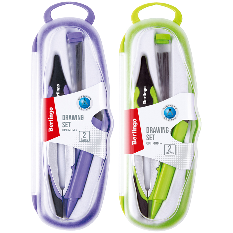 Эргономичная головка/держатель циркуля. В составе циркуль с механическим карандашом+запасной грифель для карандаша. В пластиковом пенале.