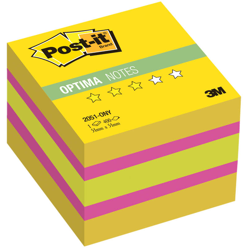 Самоклеящийся блок Post-it "Optima. Лето", 51*51мм, 400л, 3 цвета/желтая неоновая радуга