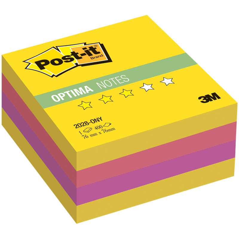Самоклеящийся блок Post-it "Optima. Лето", 76*76мм, 400л, 3 цвета/желтая неоновая радуга