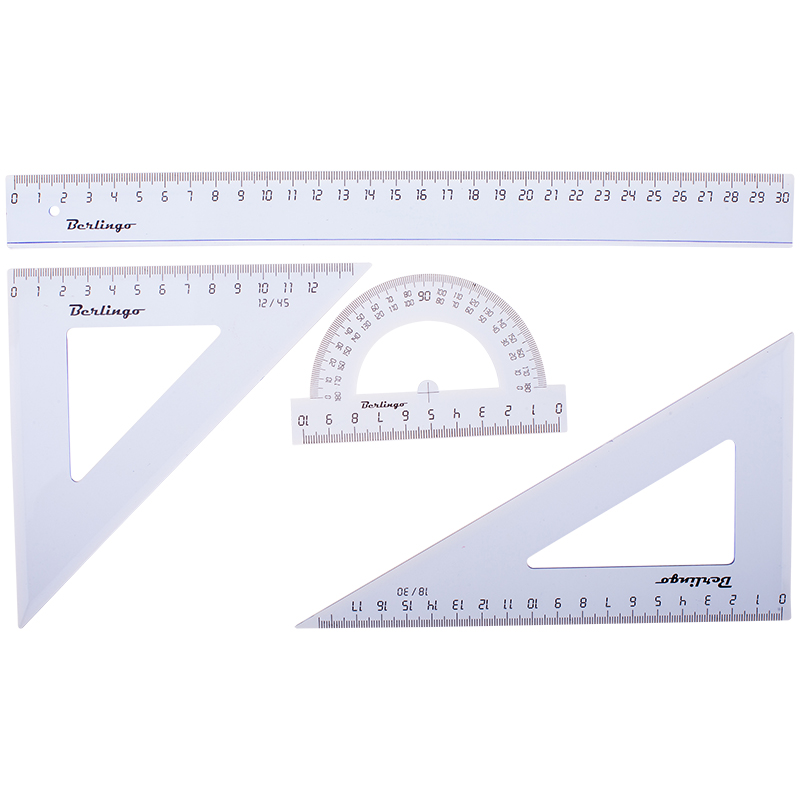 Набор чертежный большой тонированный полупрозрачный ( Линейка пластиковая 30 cм, треугольник пластиковый 30°,60 °, 18 см, треугольник пластиковый 45°,45 °, 13 см, линейка-транспортир пластиковая 180 ° ) . Пакет с европодвесом .