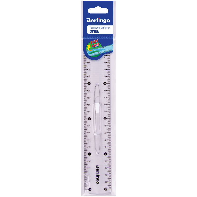 Линейка пластиковая, 20 см, безопасные закругленные края, эргономичный держатель, высококачественная градуировка с использованием УФ-чернил. Индивидуальная упаковка в пакет с европодвесом.