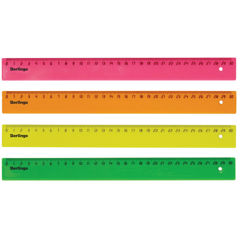 Линейка 30см, пластиковая, флуоресцентная, ассорти