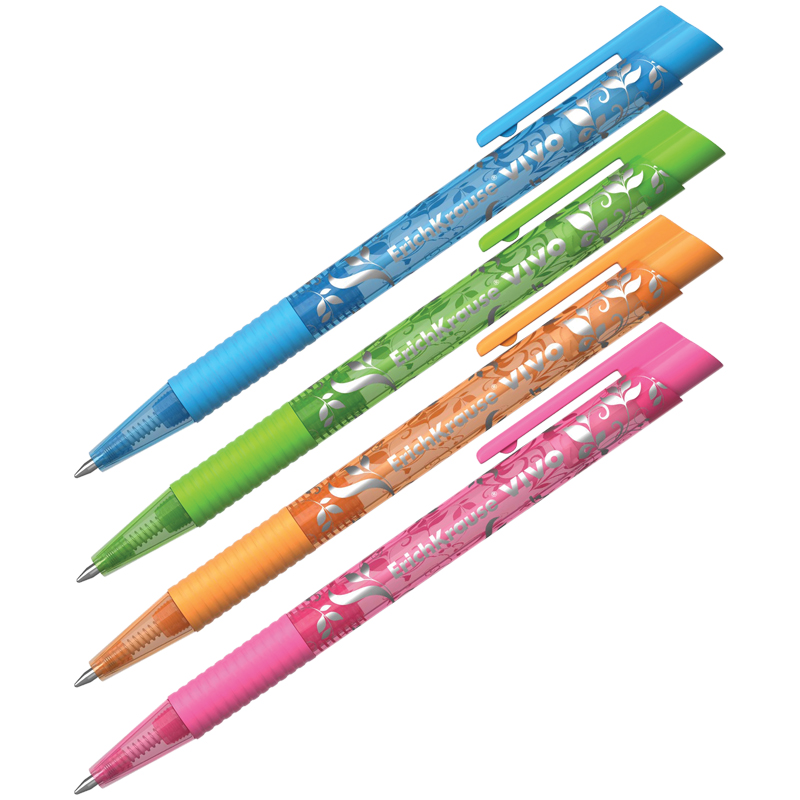 Автоматическая шариковая ручка имеет круглый полупрозрачный корпус ярких неоновых цветов в сочетании с глянцевым серебряным принтом и удобной профилированной грип-зоной из резины. 5-канальный пишущий узел с диаметром шарика 0,7 мм в сочетании с быстросохнущими чернилами обеспечивает мягкое и быстрое письмо