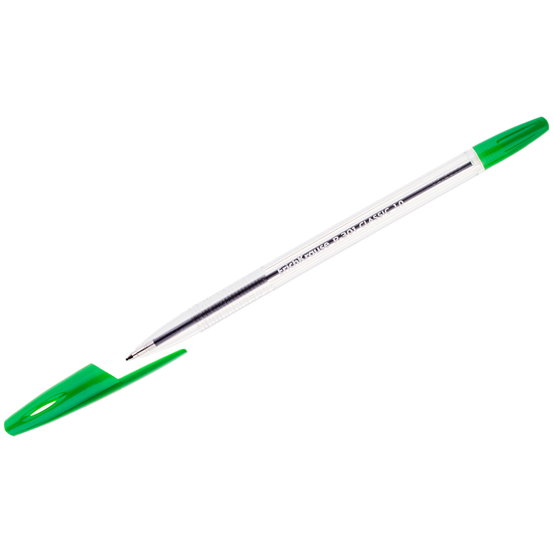 Шариковая ручка в прозрачном корпусе. Цвет вентилируемого колпачка соответствует цвету чернил