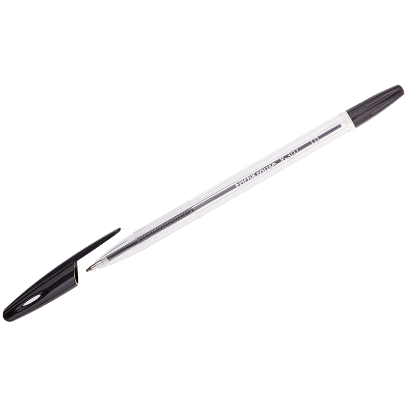 Шариковая ручка в прозрачном корпусе. Цвет вентилируемого колпачка соответствует цвету чернил