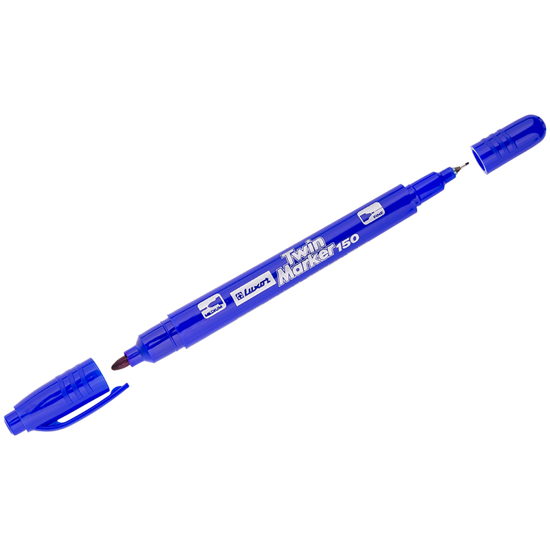 Маркер перманентный двухсторонний "150" синий, пулевидный, 0,7/1мм sela