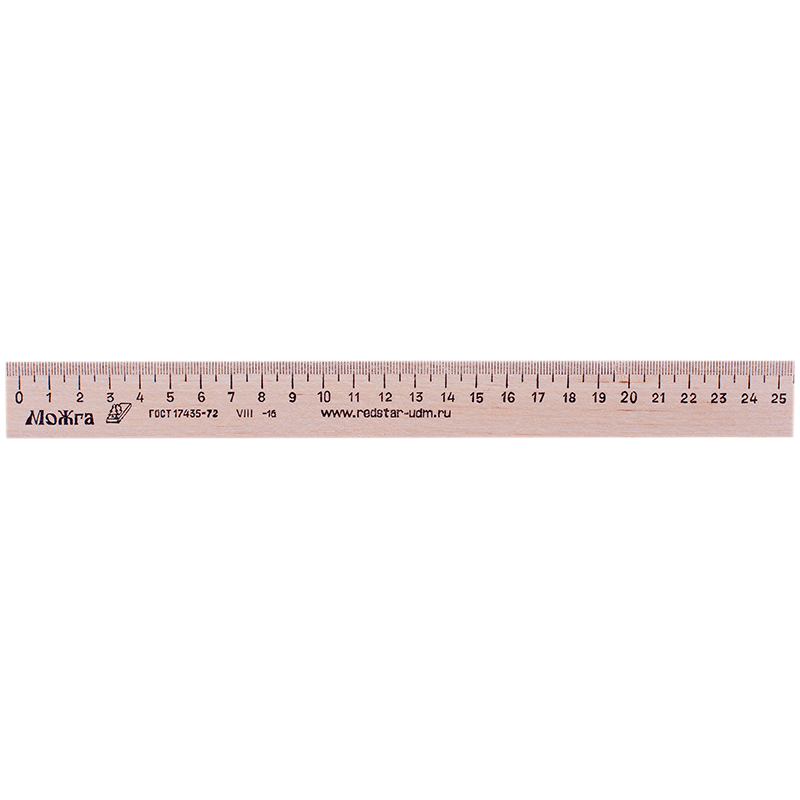 Деревянная линейка для школьников. Благодаря длине - 25 см, позволяет работать с чертежами большого масштаба. Пористый материал впитывает излишки чернил и не оставляет следов на бумаге.