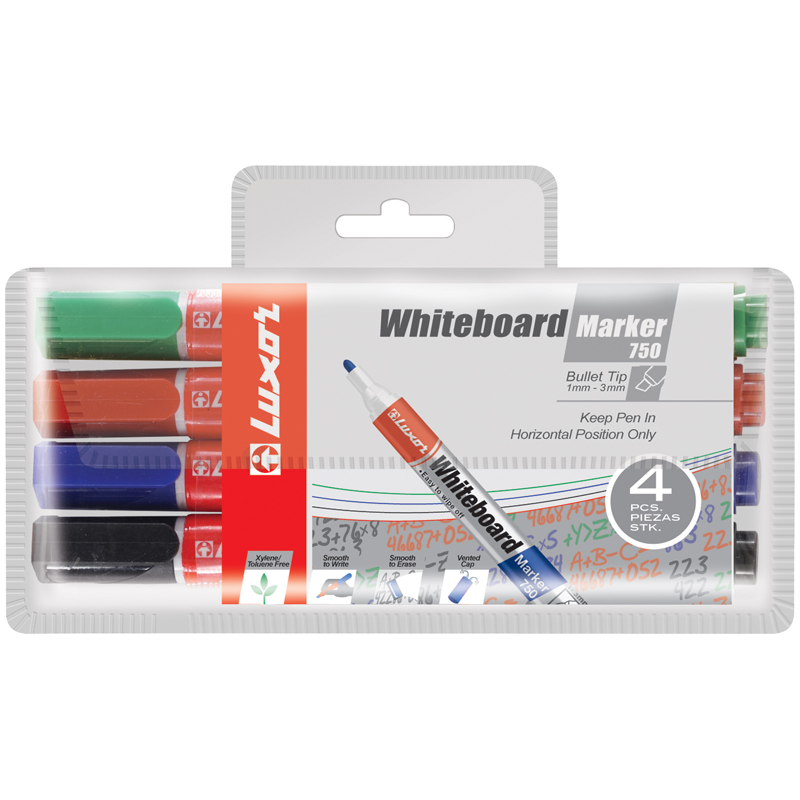 Набор маркеров для белых досок "750" 4цв., пулевидный, 1-3мм, чехол с европодвесом