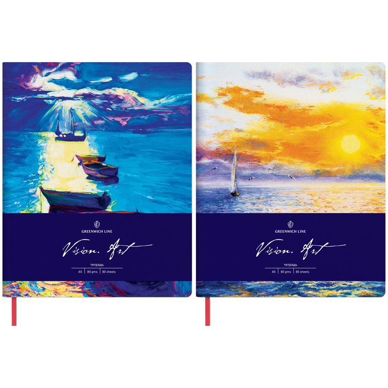 Тетрадь 80л. А5, клетка, кожзам, Greenwich Line "Vision.Art", тон. блок, цв. срез