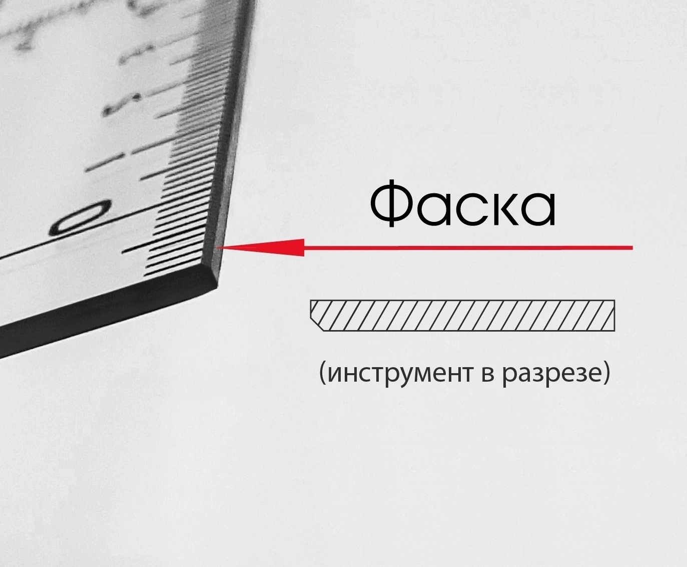 - Наличие фаcки вдoль нижней грани позвoляeт не затeкать туше рaпидoгpафa при чеpчении и она совершенно не мешает измерению.