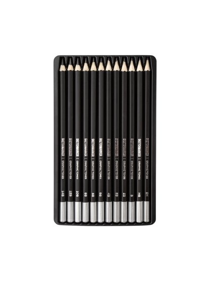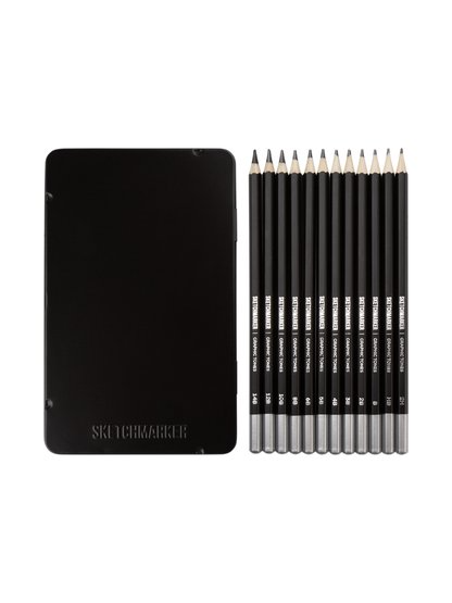Набор чернографитовых карандашей Sketchmarker, 12 штук (2Н-14B), в металлическом пенале