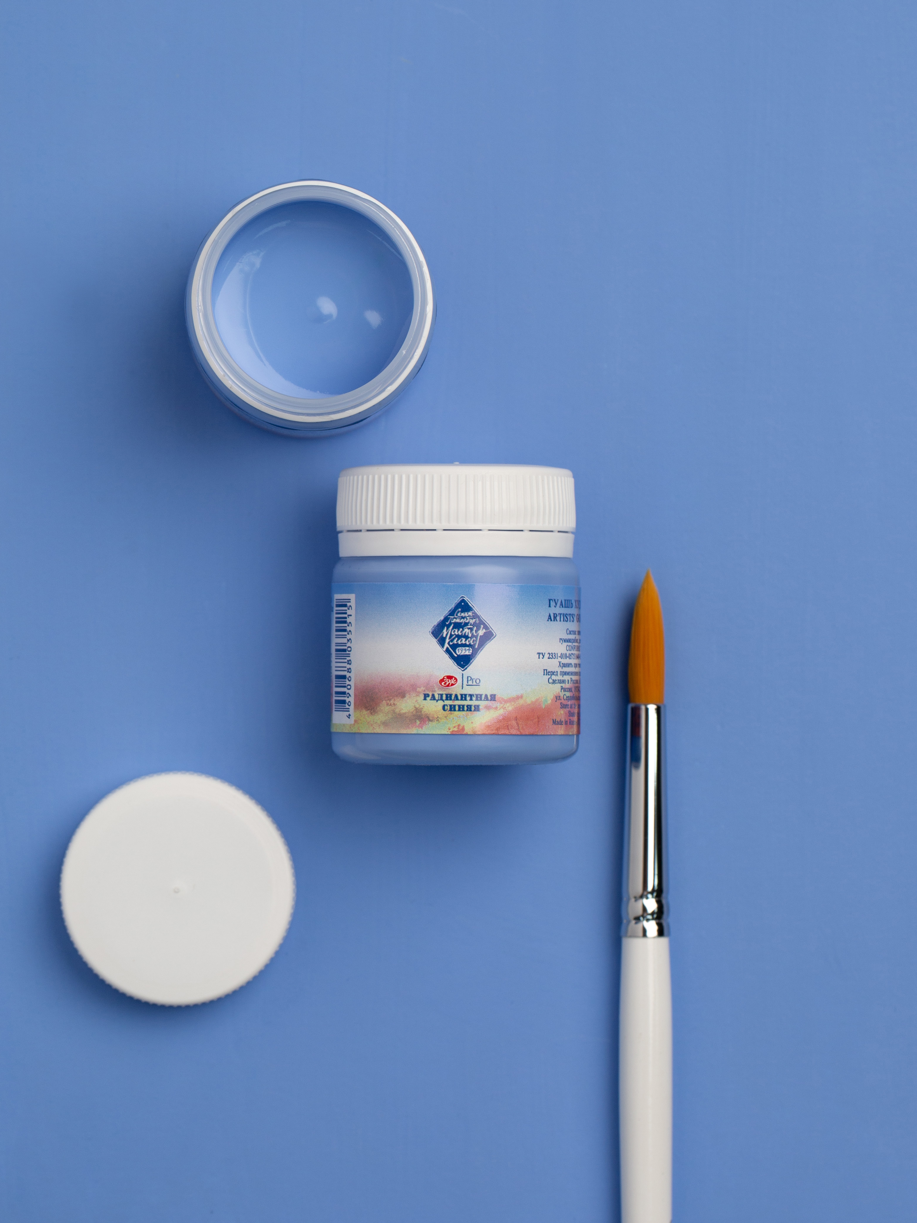 Радиантная синяя - пастельный ультрамариновый оттенок. Оттенок создан на основе пигмента Ультрамарина и Титановых белил. Обладает высокой укрывистостью. Прекрасно подходит для создания контрастных акцентов и сложных холодных теней. Легко смешивается с другими Радиантными цветами, дает широкие возможности для экспериментов с палитрой цвета. Максимальная светостойкость гарантирует сохранность цвета в завершенных работах.