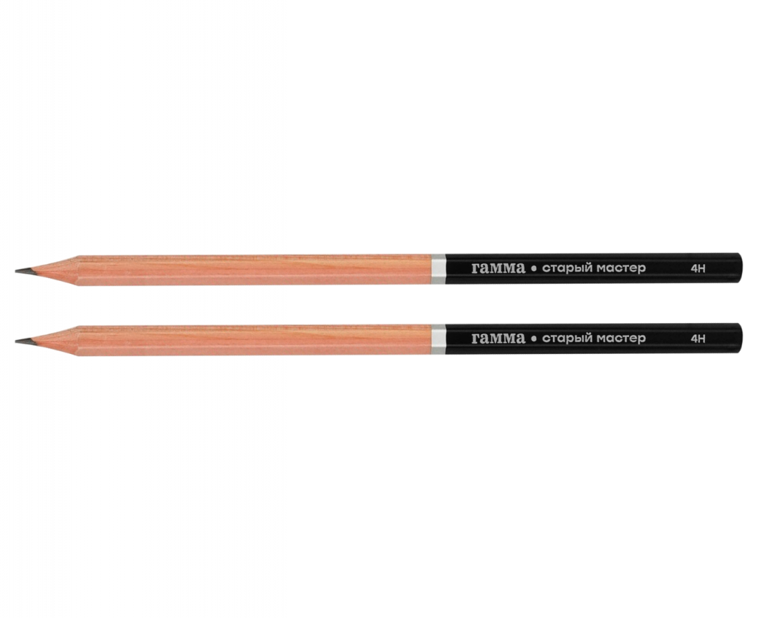 Карандаш ч/г Гамма "Старый мастер", 4H, заточен., 2 штуки