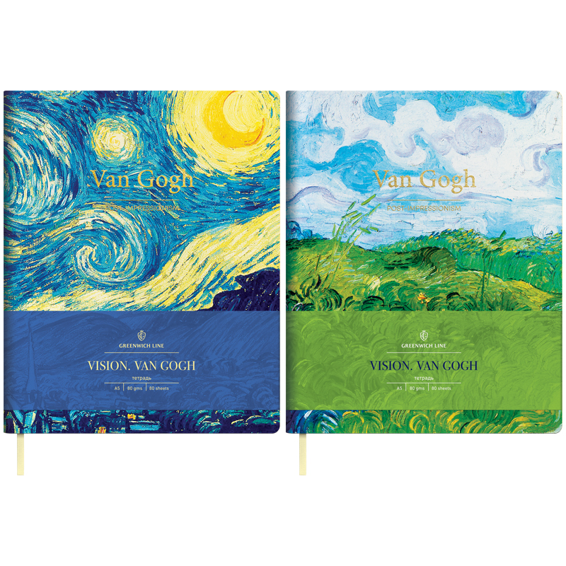 Тетрадь 80л. А5, клетка, кожзам, Greenwich Line "Vision.VanGogh", тон. блок, цв. срез