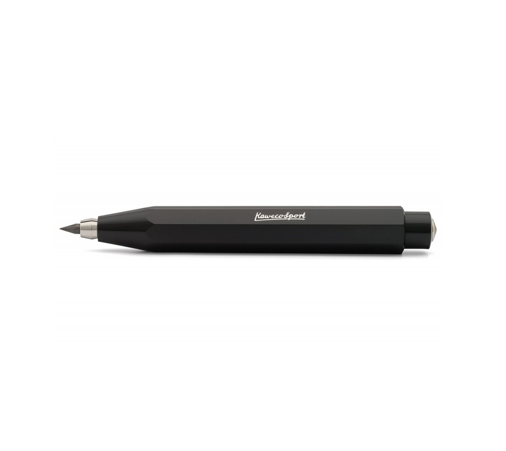 Восьмигранные цанговые карандаши серии SKYLINE Sport с шириной линии 3,2 мм производятся из высококачественного пластика в различных цветовых вариациях. Твердость грифеля — 5B. Цвет: черный. Длина: 10,5 см. Вес: 12 г. SKYLINE – это современная версия серии Kaweco SPORT. Ее главные отличия: логотип из серебристого металла и яркая палитра цветов. Название SKYLINE (Горизонт) отражает в дизайне цветные и серебряные оттенки, а также символизирует моду и образ жизни крупных мегаполисов.