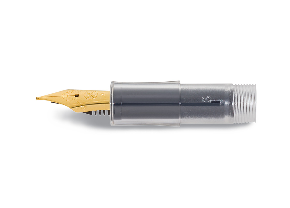 Пишущие узлы Kaweco подходят для серии CLASSIC, ICE и SKYLINE. Также в дополнение к стандартной серии представлены пишущие узлы для перьевой ручки Kaweco SKYLINE и KALLIGRAFIE. Пружина и направляющая для чернил плотно прижаты к корпусу. Размер пера: BB (1,3 мм). Материал: нержавеющая сталь/позолота. Цвет: прозрачный.