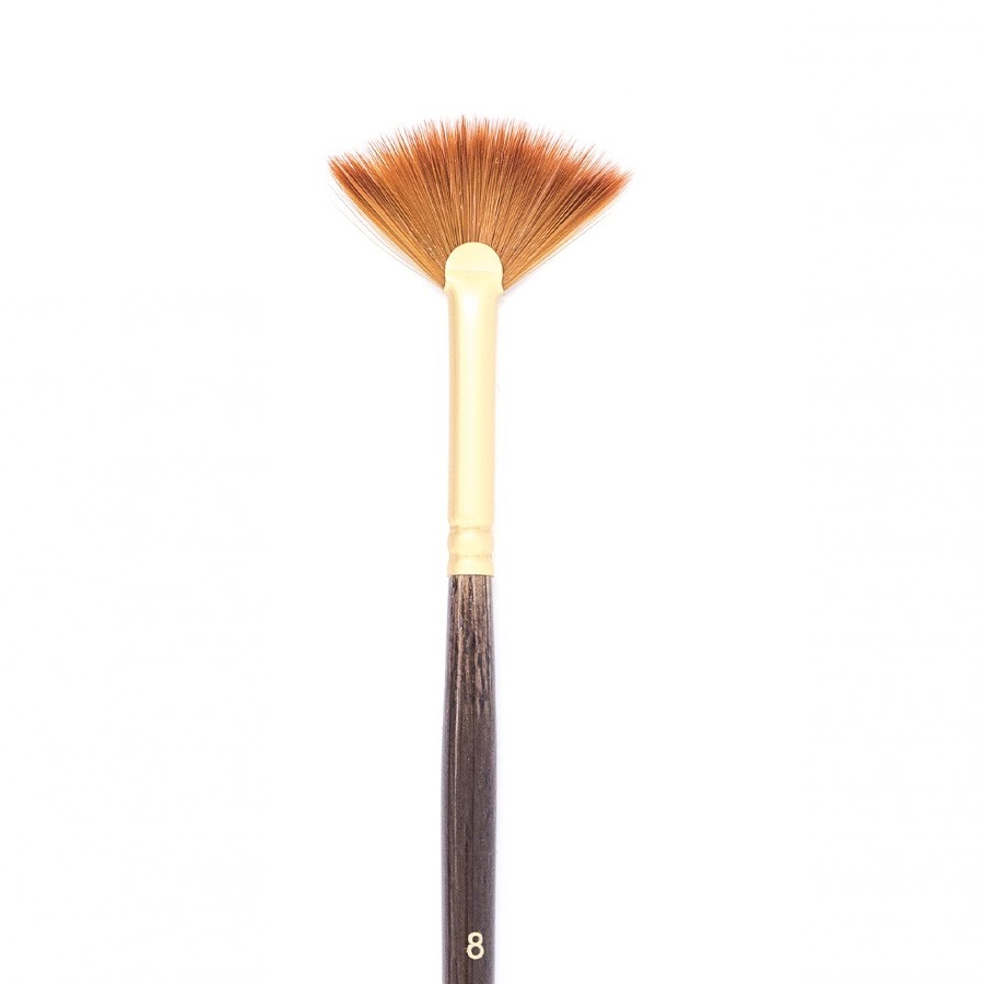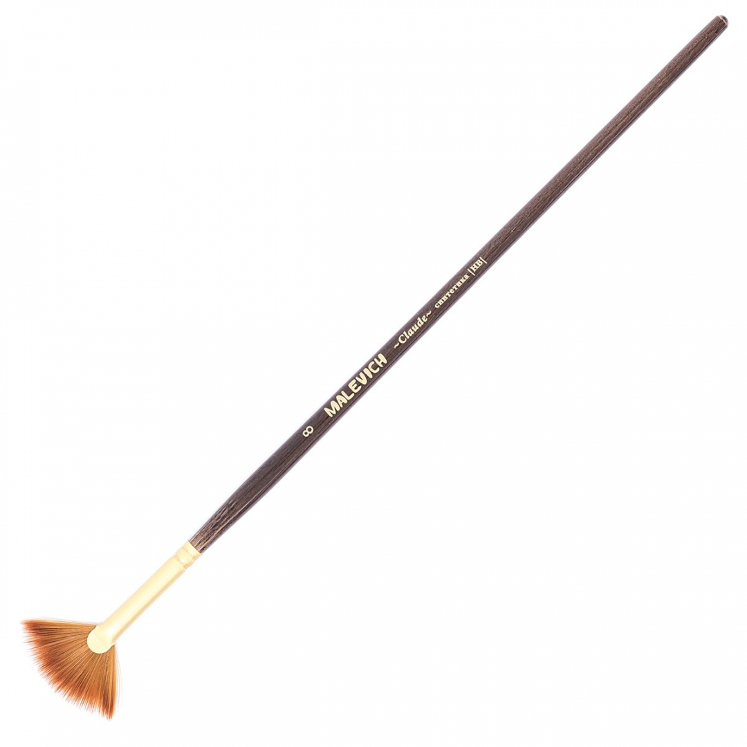Кисти серии Claude изготовлены из синтетики золотистого цвета (Shining golden synthetic) иммитирующей ворс колонка. Это ворс средней жесткости, который отлично подходит для густых красок таких как масло, акрил, гуашь, темпера. Кисти выполнены в благородной цветовой гамме. Матовая золотая втулка, коричневый прозрачный лак и лаконичная маркировка делают эти кисти не только надежным художественным инструментом, но и красивым аксессуаром. Кисть держит свою форму даже при частом использовании, ворс прочно закреплен, а втулка не расшатывается со временем. Ручка кисти оптимальной средней длины - 18 см. Длина ворса (выставка) короткая. Номер кисти соответствует диаметру в мм. Серия имеет самое большое разнообразие размеров и форм среди ассортимента Малевичъ.