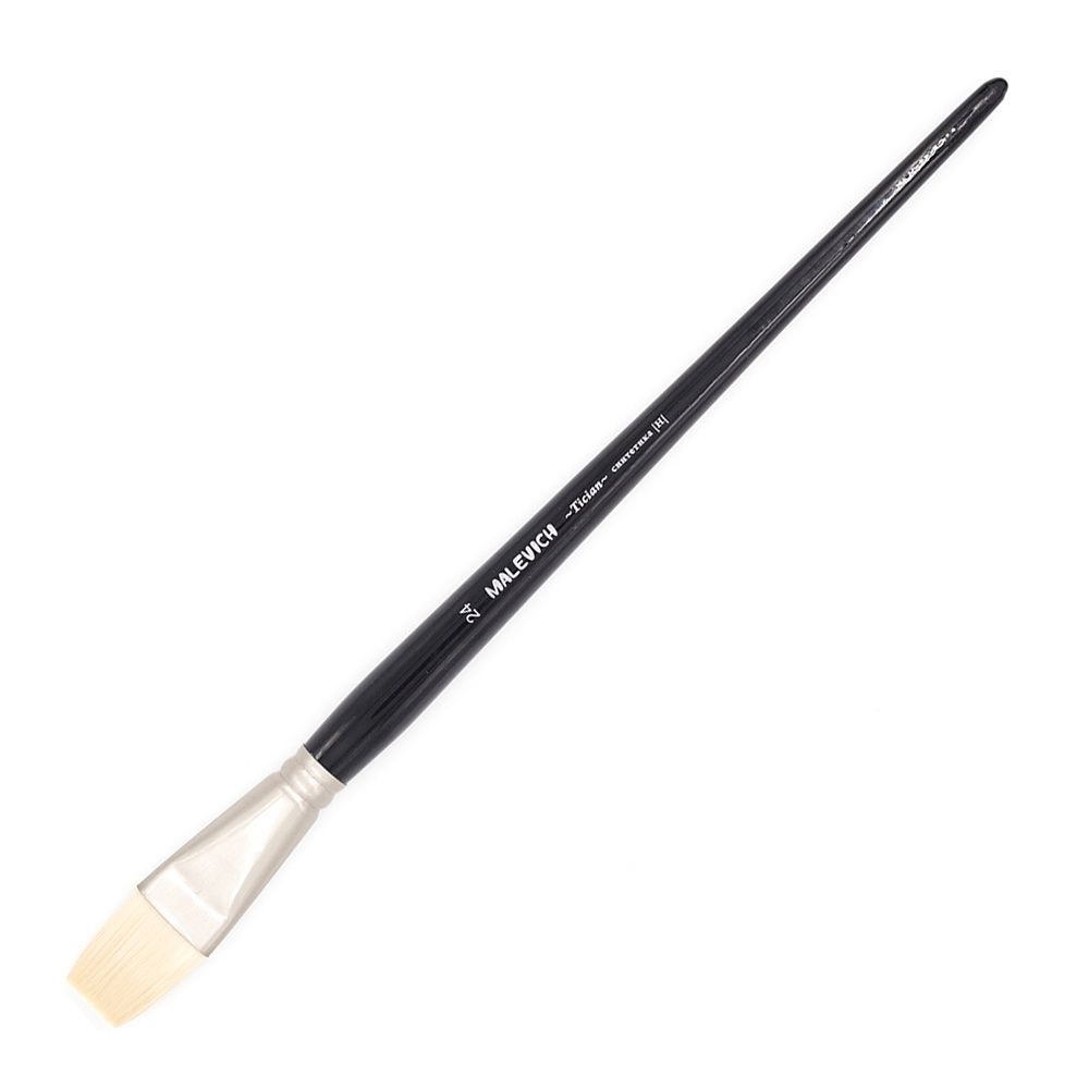 Кисти серии Tician изготовлены из жесткой синтетики белого цвета иммитирующей щетину. Этот ворс отлично подходит для густых красок таких как масло, акрил, гуашь, темпера. Кисти выполнены в благородной цветовой гамме. Матовая втулка с теплым металлическим оттенком, черный лак и лаконичная маркировка делают эти кисти не только надежным художественным инструментом, но и красивым аксессуаром. Кисть держит свою форму даже при частом использовании, ворс прочно закреплен, а втулка не расшатывается со временем. Ручка кисти длинная - 25 см. Длина ворса (выставка) короткая. Номер кисти соответствует диаметру в мм.