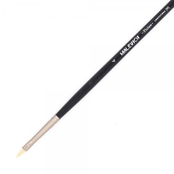 Кисти серии Tician изготовлены из жесткой синтетики белого цвета иммитирующей щетину. Этот ворс отлично подходит для густых красок таких как масло, акрил, гуашь, темпера. Кисти выполнены в благородной цветовой гамме. Матовая втулка с теплым металлическим оттенком, черный лак и лаконичная маркировка делают эти кисти не только надежным художественным инструментом, но и красивым аксессуаром. Кисть держит свою форму даже при частом использовании, ворс прочно закреплен, а втулка не расшатывается со временем. Ручка кисти длинная - 25 см. Длина ворса (выставка) короткая. Номер кисти соответствует диаметру в мм.