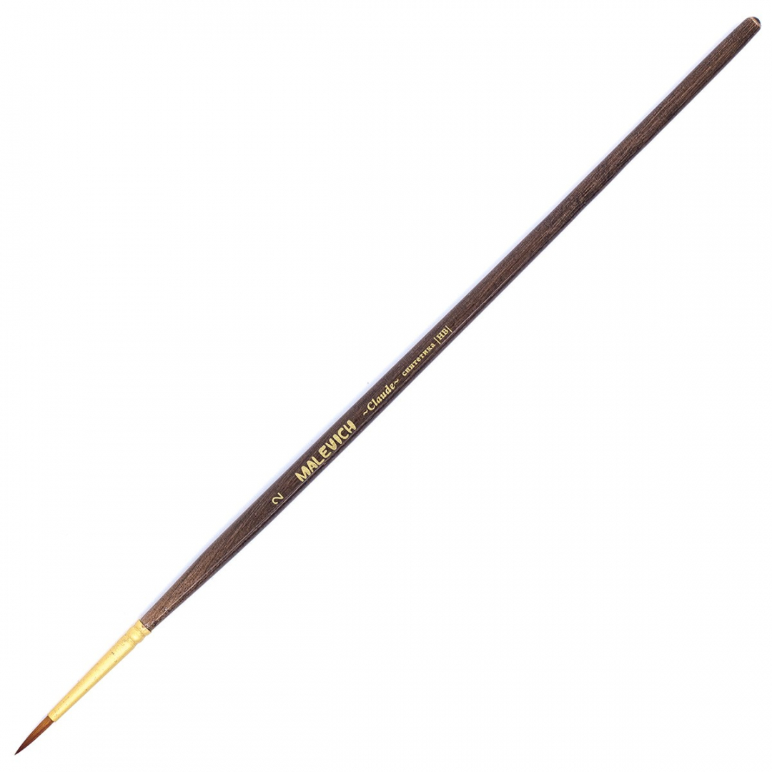 Кисти серии Claude изготовлены из синтетики золотистого цвета (Shining golden synthetic) иммитирующей ворс колонка. Это ворс средней жесткости, который отлично подходит для густых красок таких как масло, акрил, гуашь, темпера. Кисти выполнены в благородной цветовой гамме. Матовая золотая втулка, коричневый прозрачный лак и лаконичная маркировка делают эти кисти не только надежным художественным инструментом, но и красивым аксессуаром. Кисть держит свою форму даже при частом использовании, ворс прочно закреплен, а втулка не расшатывается со временем. Ручка кисти оптимальной средней длины - 18 см. Длина ворса (выставка) короткая. Номер кисти соответствует диаметру в мм. Серия имеет самое большое разнообразие размеров и форм среди ассортимента Малевичъ.
