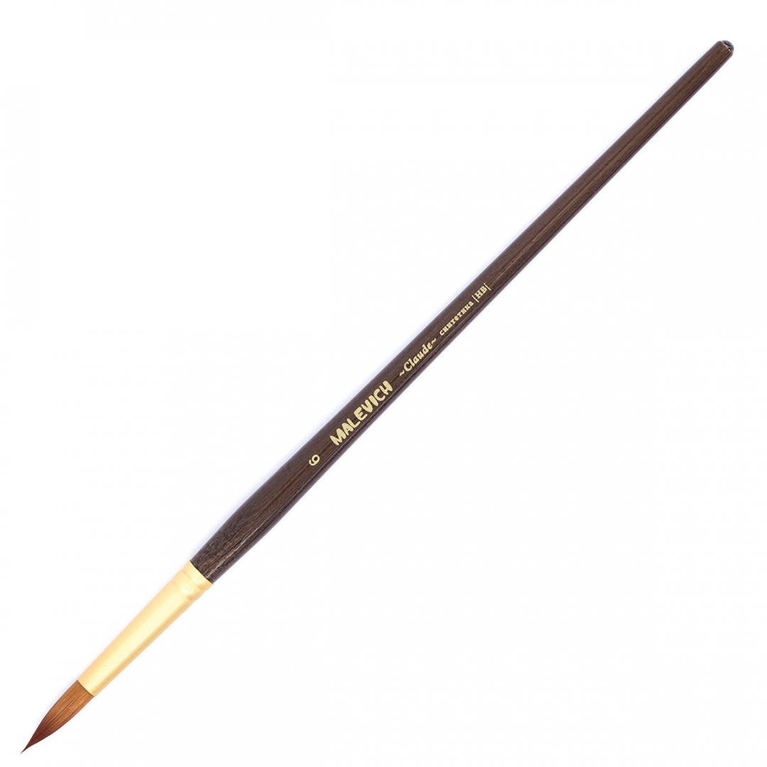 Кисти серии Claude изготовлены из синтетики золотистого цвета (Shining golden synthetic) иммитирующей ворс колонка. Это ворс средней жесткости, который отлично подходит для густых красок таких как масло, акрил, гуашь, темпера. Кисти выполнены в благородной цветовой гамме. Матовая золотая втулка, коричневый прозрачный лак и лаконичная маркировка делают эти кисти не только надежным художественным инструментом, но и красивым аксессуаром. Кисть держит свою форму даже при частом использовании, ворс прочно закреплен, а втулка не расшатывается со временем. Ручка кисти оптимальной средней длины - 18 см. Длина ворса (выставка) короткая. Номер кисти соответствует диаметру в мм. Серия имеет самое большое разнообразие размеров и форм среди ассортимента Малевичъ.