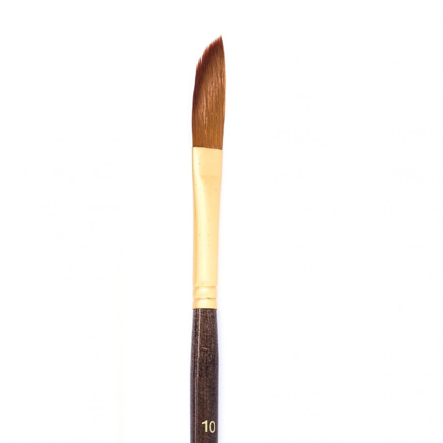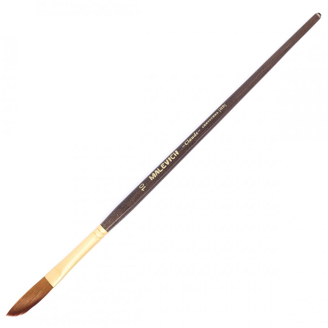 Кисти серии Claude изготовлены из синтетики золотистого цвета (Shining golden synthetic) иммитирующей ворс колонка. Это ворс средней жесткости, который отлично подходит для густых красок таких как масло, акрил, гуашь, темпера. Кисти выполнены в благородной цветовой гамме. Матовая золотая втулка, коричневый прозрачный лак и лаконичная маркировка делают эти кисти не только надежным художественным инструментом, но и красивым аксессуаром. Кисть держит свою форму даже при частом использовании, ворс прочно закреплен, а втулка не расшатывается со временем. Ручка кисти оптимальной средней длины - 18 см. Длина ворса (выставка) короткая. Номер кисти соответствует диаметру в мм. Серия имеет самое большое разнообразие размеров и форм среди ассортимента Малевичъ.