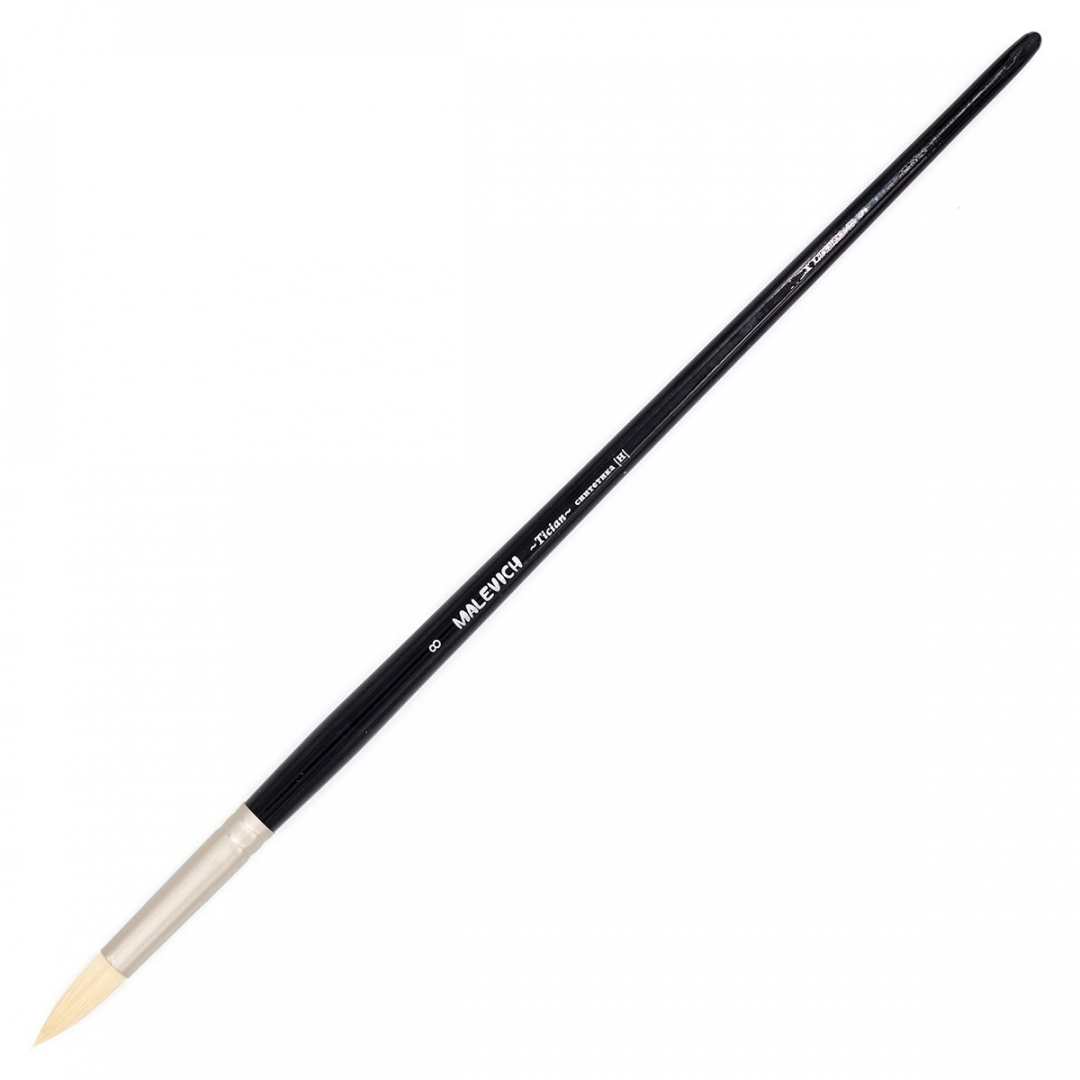 Кисти серии Tician изготовлены из жесткой синтетики белого цвета иммитирующей щетину. Этот ворс отлично подходит для густых красок таких как масло, акрил, гуашь, темпера. Кисти выполнены в благородной цветовой гамме. Матовая втулка с теплым металлическим оттенком, черный лак и лаконичная маркировка делают эти кисти не только надежным художественным инструментом, но и красивым аксессуаром. Кисть держит свою форму даже при частом использовании, ворс прочно закреплен, а втулка не расшатывается со временем. Ручка кисти длинная - 25 см. Длина ворса (выставка) короткая. Номер кисти соответствует диаметру в мм.