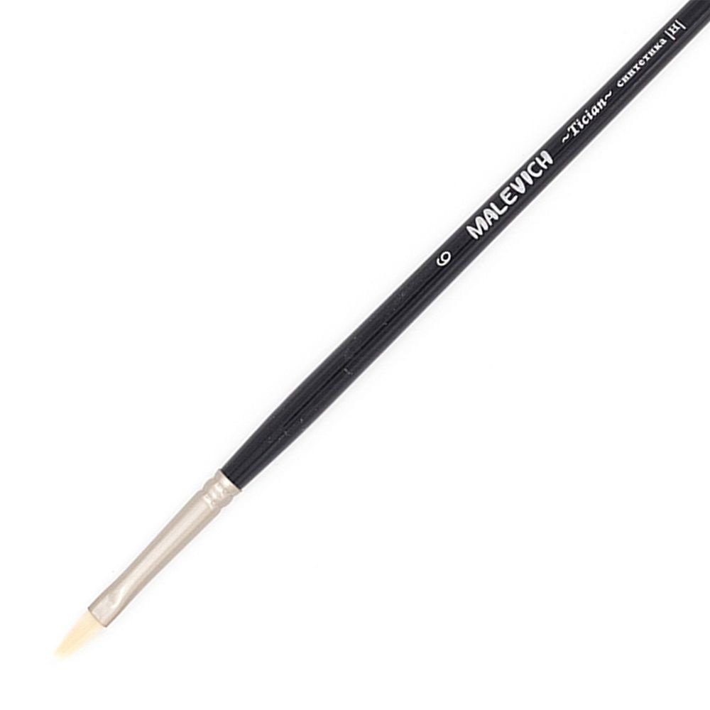 Кисти серии Tician изготовлены из жесткой синтетики белого цвета иммитирующей щетину. Этот ворс отлично подходит для густых красок таких как масло, акрил, гуашь, темпера. Кисти выполнены в благородной цветовой гамме. Матовая втулка с теплым металлическим оттенком, черный лак и лаконичная маркировка делают эти кисти не только надежным художественным инструментом, но и красивым аксессуаром. Кисть держит свою форму даже при частом использовании, ворс прочно закреплен, а втулка не расшатывается со временем. Ручка кисти длинная - 25 см. Длина ворса (выставка) короткая. Номер кисти соответствует диаметру в мм.
