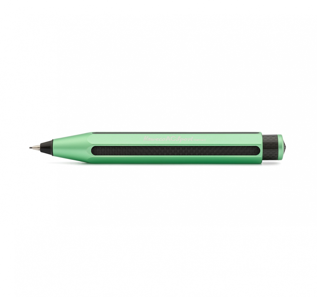 Механические карандаши серии AC Sport с ширеной линии 0,7 мм производятся из алюминия и карбона. Дизайн этой серии вдохновлен современными спортивными автомобилями. Алюминий и карбон перестали быть просто декоративными элементами, они влияют на многие аспекты динамики и эффективности спорткаров. Когда дело доходит до письменных принадлежностей, эти материалы позволяют не только улучшить дизайн изделия, но и повлиять на удобство письма (уменьшить вес ручки, сделать поверхность корпуса более комфортной). Цвет корпуса: зеленый.