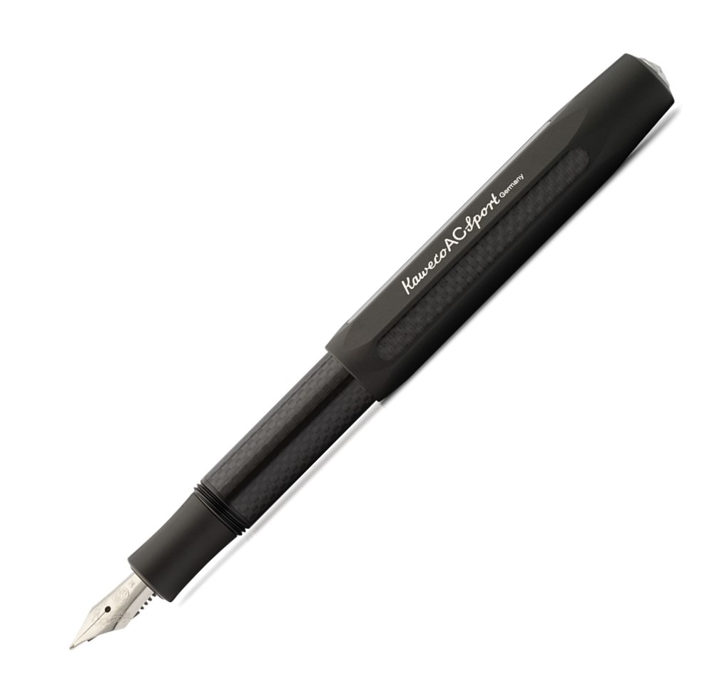 Компактная перьевая ручка AC Sport производится из алюминия и карбона. Дизайн этой серии вдохновлен современными спортивными автомобилями. Алюминий и карбон перестали быть просто декоративными элементами, они влияют на многие аспекты динамики и эффективности спорткаров. Когда дело доходит до письменных принадлежностей, эти материалы позволяют не только улучшить дизайн изделия, но и повлиять на удобство письма (уменьшить вес ручки, сделать поверхность корпуса более комфортной). Длина ручки в закрытом состоянии 10,5 см, в открытом - 13 см. Размер пера: F (0,7 мм). Цвет чернил: синий. Цвет корпуса: черный.