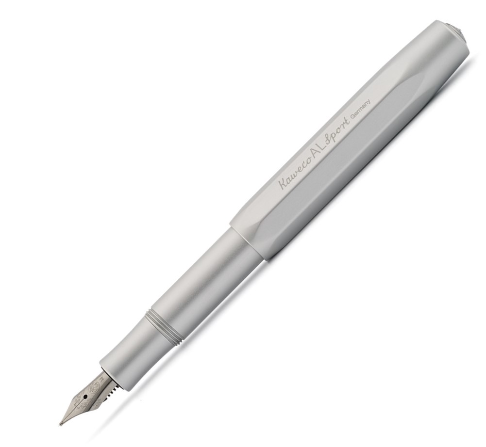 Компактные перьевые ручки серии AL Sport изготавливаются из высококачественного алюминия и доступны в разных цветовых вариациях. Алюминий обработан с помощью ЧПУ-технологии, чтобы получить сатиновую отделку и закаленную поверхность. Модель "Stonewashed" ("Вареная") уже стилизована под старину. Модель же "Raw" ("Сырая") быстро покрывается налетом, так как алюминий в ней не обработан. Длина ручек в закрытом состоянии 10,5 см, в открытом - 13 см. Благодаря небольшому весу (всего 21 г) ручки AL Sport удобно брать в путешествия. Размер пера: F (0,7 мм). Цвет корпуса: серебристый.